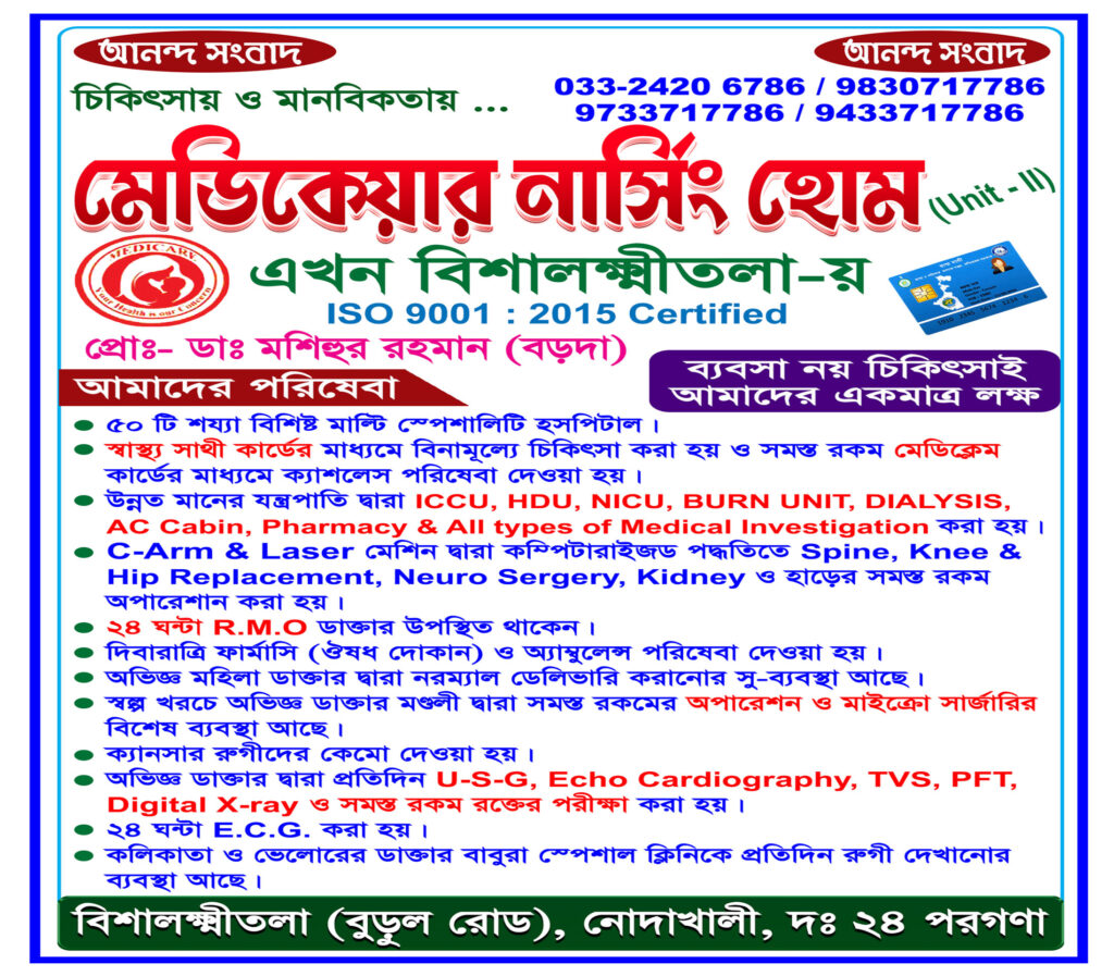 খবর এবং বিজ্ঞাপনের জন্য যোগাযোগ করুন:- ৯১৫৩০৪৩৩৮০