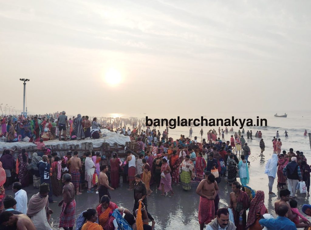 রমেশ রায়,বাংলার চাণক্য নিউজ ডেস্ক:- গঙ্গাসাগর সঙ্গমে মাঘী পূর্ণিমায় লক্ষ লক্ষ পুণ্যার্থী স্নান সারছেন।আর পূণ্যার্থীদের কথা ভেবে কাকদ্বীপ মহকুমা প্রাশাসন সবরকম বন্দোবস্ত করেছে। নিরাপত্তায় অতিরি্ক্ত জোর দিতে বাড়ানো হয়েছে পুলিশের সংখ্যা।সকাল থেকেই স্নানের পর কপিলমুনি মন্দিরে পুজো দেওয়ার লম্বা লাইন পড়েছে। জেলা প্রশাসনের পক্ষ থেকে পুণ্যার্থীদের জন্য শৌচালয়, যাত্রীনিবাসের ব্যবস্থা করা হয়েছে। সুন্দরবন পুলিশ জেলার পক্ষ থেকে অতিরিক্ত পুলিশ বাহিনী মোতায়েন করা হয়েছে।