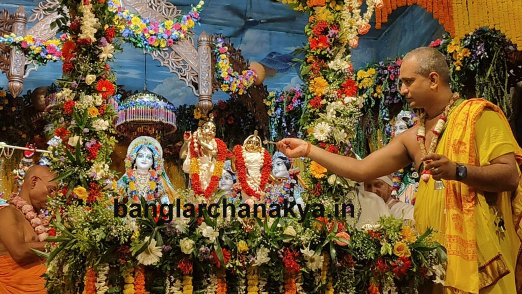 রমেশ রায়,বাংলার চাণক্য নিউজ ডেস্ক:- ইসকনের প্রধান কেন্দ্র মায়াপুরসহ বিশ্বব্যাপী বিভিন্ন শাখায় ৩১ আগস্ট রবিবার মহাসমারোহে পালিত হলো রাধারানীর ৫২৫২তম আবির্ভাব তিথি তথা রাধাষ্টমী উৎসব। এদিন দেশ,বিদেশে আসা লক্ষাধিক ভক্তের সমারোহে সরগরম হয়ে উঠেছিল মায়াপুরের ইসকন মন্দির চত্বর। এদিন সকালে যথাযথ নিয়ম রীতি মেনে দুধ, মধু, ঘি, ফুল সহ বিভিন্ন সামগ্রী সহযোগে অবগাহন তথা অভিষেক করানো হয় রাধারানীর ধাতব মুর্তিকে। দীর্ঘ সময় ধরে চলে এই আচার অনুষ্ঠান, যার সাক্ষী থাকলেন অগনিত ভক্তবৃন্দ।